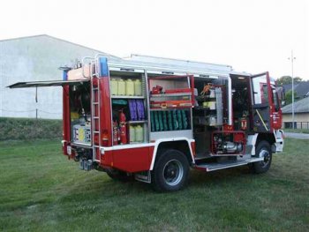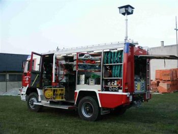 Dieses Fahrzeug ist eine Kombination aus Rüstfahrzeug, für den technischen Einsatz und Löschfahrzeug für Brandeinsätze und ist auf einem MAN LKW Fahrgestell aufgebaut.